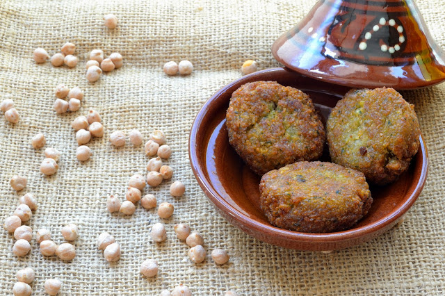Poner los garbanzos en remojo la noche anterior. Escurrirlos y dejarlos secar. Triturar los garbanzos sin cocer junto al ajo, la cebolla, el perejil, el cilantro y un poco de agua. Añadir la sal, la pimienta, el comino y el bicarbonato. Dejar reposar una media hora. Formar unas bolas, si os resulta difícil manejar la mesa por ser demasiado húmeda, añadir pan rallado o harina. Aplastar las bolas un poco y freír hasta que estén bien doraditas.