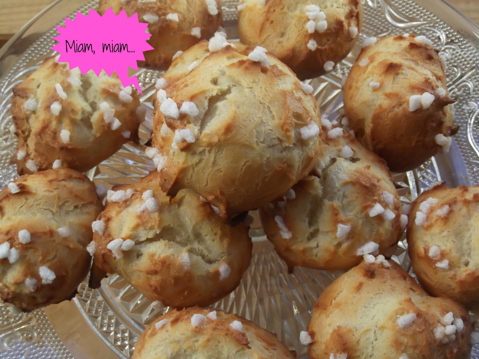 Si lo sé, soy cruel, no lo puedo remediar. A sabiendas de que el churri tiene casi todo prohibido, voy y me pongo a hacer unas "chouquettes" monissímas de la muerte, redonditas, doraditas y esponjosas con sus perlitas de azúcar, mmmmmm. Al fin y al cabo, yo no tengo la culpa de su genética y su amor a los embutidos, fritos, chocolate.....y si tengo mono de hornear, todo no va a ser las 3 malditas "P", que ocupan mi lista de la compra semanal, pollo-pavo-pescado y que por otra parte a mi me van bien.